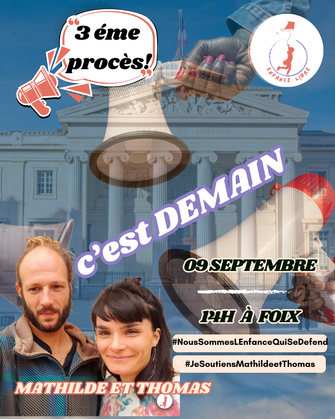 📍 Où ? Tribunal judiciaire de Foix 🗓️ Quand ? le 9 septembre à 14h 👥 Qui ? Mathilde et Thomas